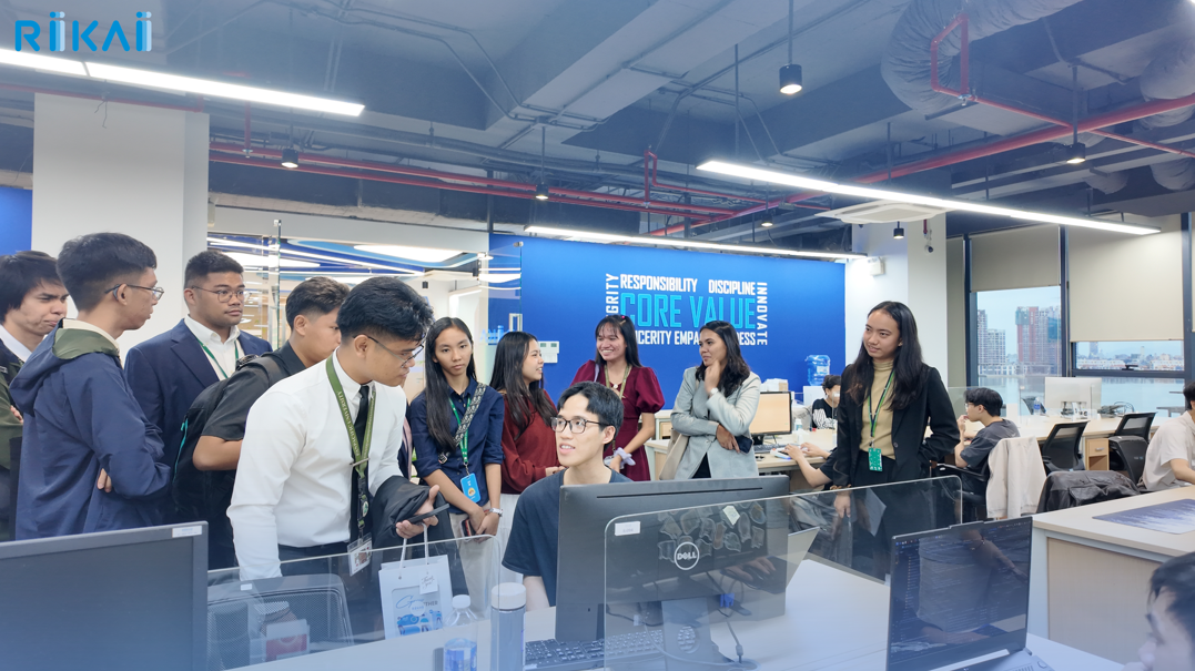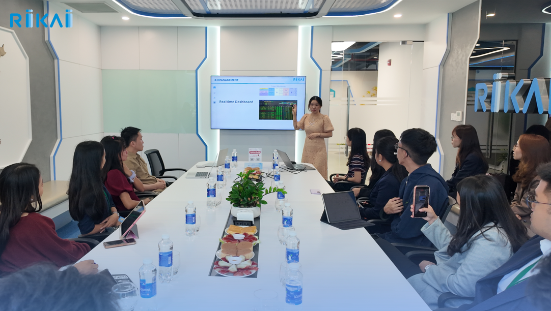 Trong khuôn khổ chuyến tham quan, sinh viên đã được giới thiệu tổng quan về RIKAI, bao gồm lĩnh vực hoạt động, văn hóa doanh nghiệp, môi trường làm việc cũng như các dự án công nghệ tiêu biểu mà công ty đang triển khai. Qua đó, các bạn có cái nhìn rõ nét hơn về mô hình vận hành của một doanh nghiệp công nghệ thông tin chuyên nghiệp.